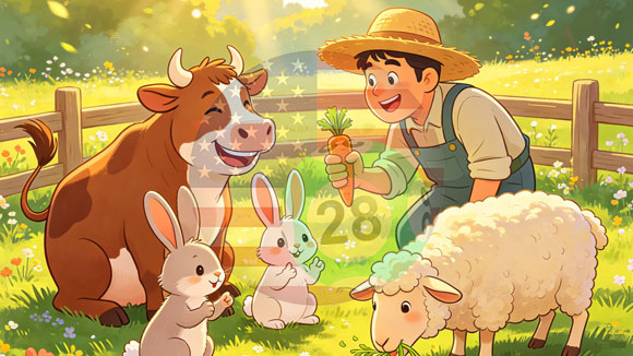 小周带着小牛、小兔和小羊去牧场,小兔蹦到小牛背上啃草,小牛慢悠悠走着,小羊凑过来想和小兔一起玩,却被小兔蹬了一下鼻子。小羊委屈地蹭向小周,小周笑着把小兔抱下来,让三个小家伙并排站好。...本期图片会给我们带来什么样的玄机呢?